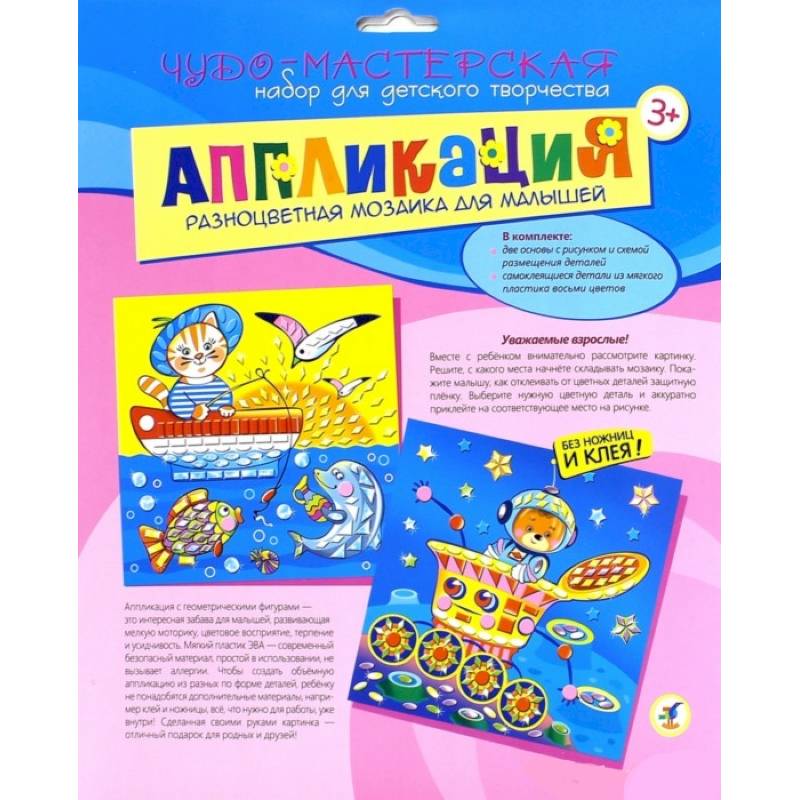 Набор для аппликации непременно привлечёт внимание юных мастеров, потому что в нём использован необычный материал - мягкий пластик ЭВА с голографическим покрытием. В результате готовая картинка получится яркой и блестящей. Малыш легко справится с работой, ведь ему не нужны ни клей, ни ножницы: объёмные детали легко приклеятся на картонную основу. Готовая картинка станет прекрасным подарком для родных и друзей, или просто украшением детской комнаты.