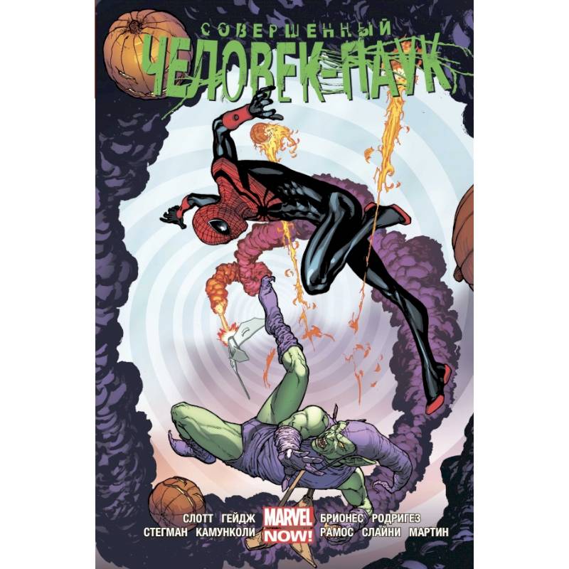 В книгу вошли комиксы 'Совершенный Человек-Паук' #1-31, а также Ежегодники #1-2, написанные Дэном Слоттом и Кристосом Гейджем и проиллюстрированные Райаном Стегманом, Джузеппе Камунколи, Умберто Рамосом, Хавьером Родригезом и многими другими.