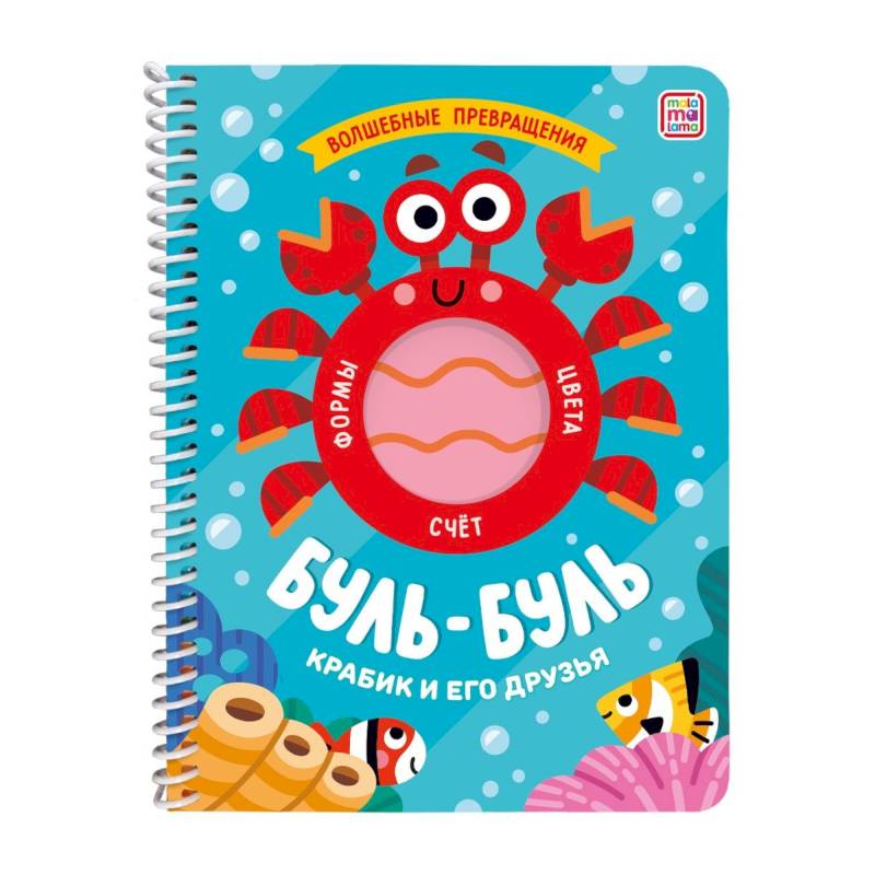 Серия книг 'Волшебные превращения' от торговой марки Malamalama — это нескучные занятия для малышей. Книга 'Буль-буль. Крабик и его друзья', Книга 'Ква-ква. Лягушонок' и его друзья поможет выучить первые цифры, научиться простому счёту, изучить цвета и формы. Книга выполнена из мелованного картона и соединена с помощью спирали, благодаря чему страницы легко переворачивать. Книги предназначены для развития мелкой моторики, эмоционального интеллекта с рождения для мальчиков и девочек. Крупные, яркие иллюстрации сопровождают каждое задание. Книги для детей удобно брать в дорогу. Каждая страница связана с соседними с помощью специальных отверстий.