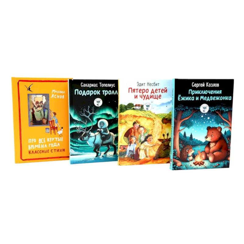 Перед вами — собрание лучших образцов детской литературы, где классические сказки и стихи звучат удивительно свежо, а современные истории уже стали частью культурного наследия. Это комплект, в котором время не мешает книгам дружить, а, наоборот, соединяет — через волшебство, игру и настоящие чувства. Вас ждут встречи со скандинавскими троллями, британский песочный эльф, озорные стихи про времена года и чаепитие с Ёжиком и Медвежонком во всем многообразии классических и современных историй.