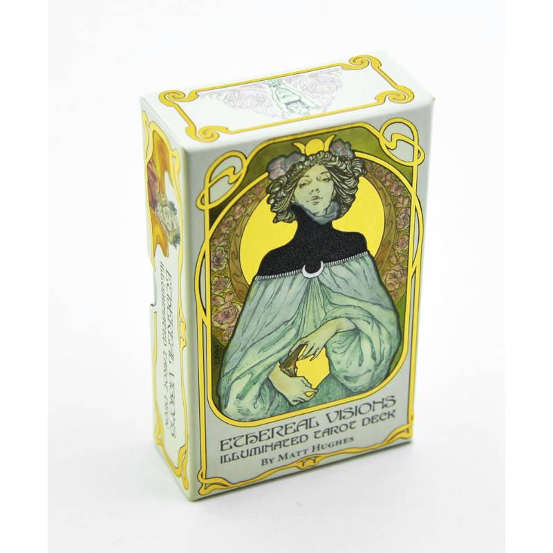 Создавая Таро Эфирных видений, Мэтт Хьюз черпал вдохновение из художественного направления Модерн, переняв его особый стиль и тщательный подход к искусству. Кроме того, художник создал две карты в дополнение к традиционным старшим арканам. Все изображения в колоде раскрашены вручную, тиснение золотой фольгой придает элегантный вид колоде.