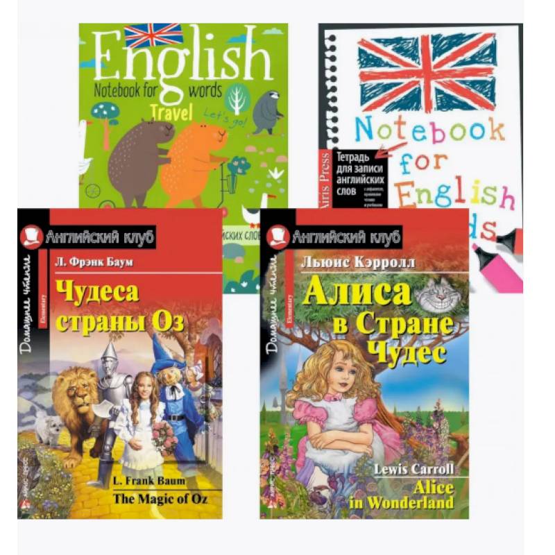 Баум Л.Ф., Кэрролл Л. Чудеса страны Оз. Алиса в Стране Чудес. + Тетради для записи английских слов (комплект из 2-х книг + 2 тетради). Книги на англ.языке