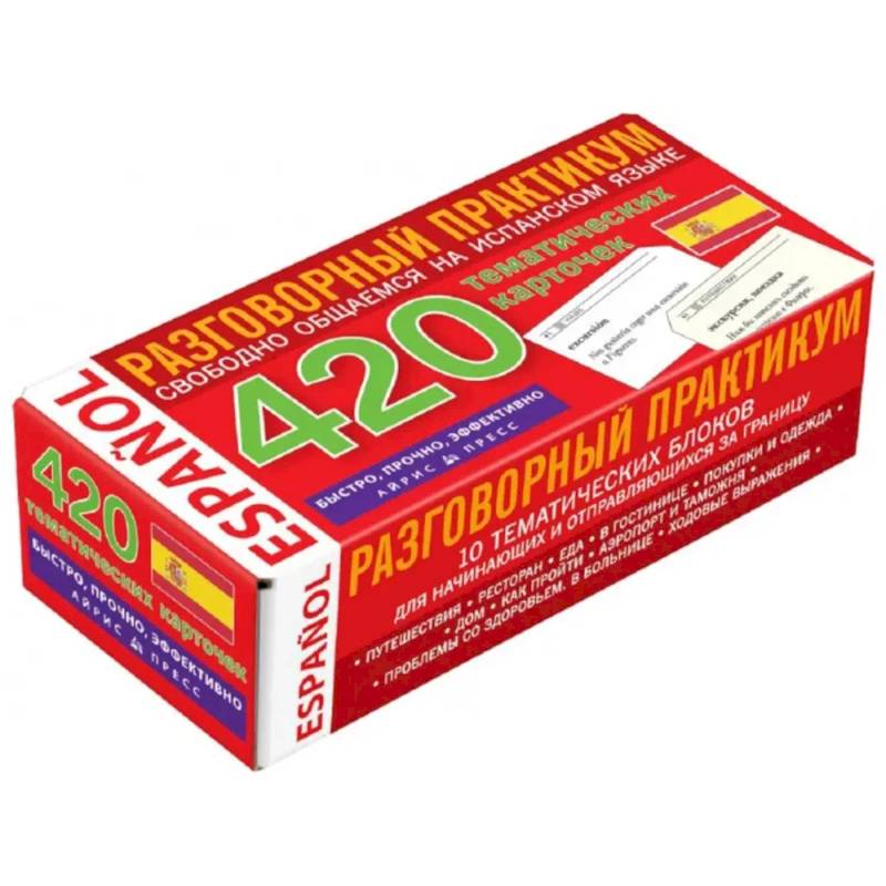 На карточках размещены наиболее употребимые испанские слова и выражения, сгруппированные в 10 тематических блоков. Все слова и выражения сопровождаются примерами употребления и переводом на русский язык. Карточки предназначены для широкого круга лиц, изучающих испанский язык.